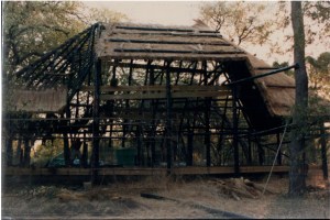 Jerry found the perfect spot on the property given to us by the Tawana Land Board and we staked out where the rest of the houses would be. We started out living in one room, me, Jerry, and the 3 boys. As things got more finished, we established our Love Botswana office in the loft of the house. I don’t know what I was thinking when we decided to put our very first phone line in, upstairs! The problem was that there were no stairs. We used a ladder to get up and down. During this period there was no railing and I am sure if we had been in the USA we would have been reported for endangering our kids! Thankfully, not one of them ever fell off that loft on their head! I do have some head injury stories, but I will save those for another time!